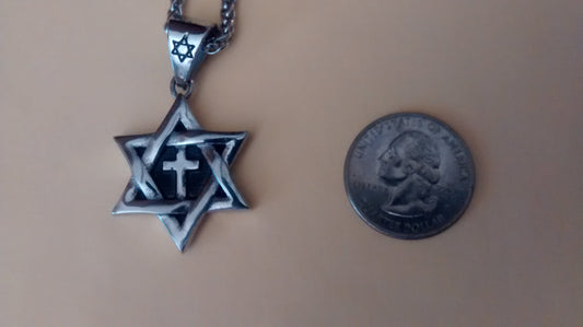 Jewish star with cross necklace. w/ Blue Opal Gold Plated.