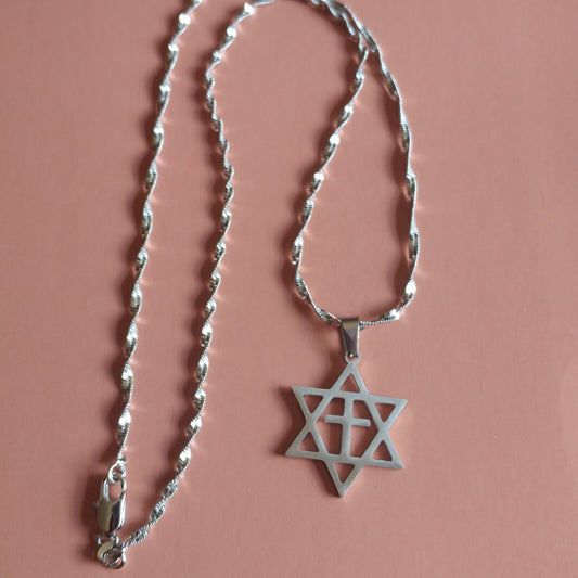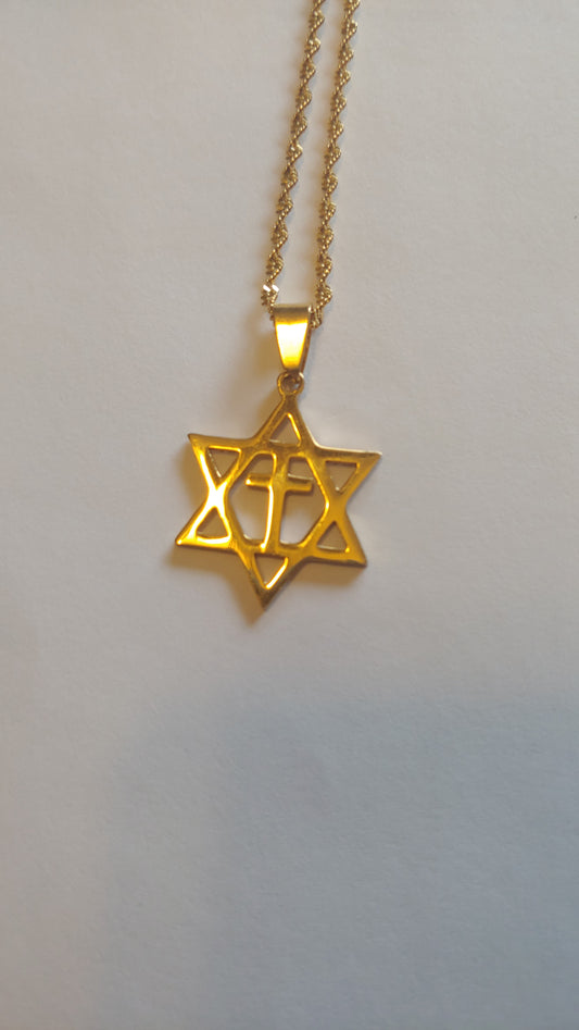 Jewish star with Cross necklace - Multi colors - Gold plated