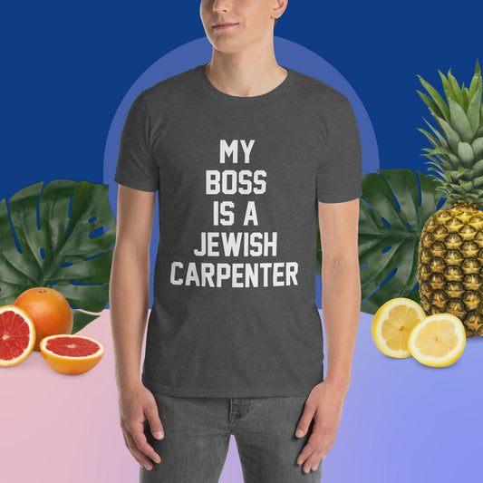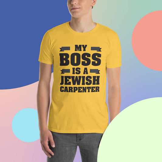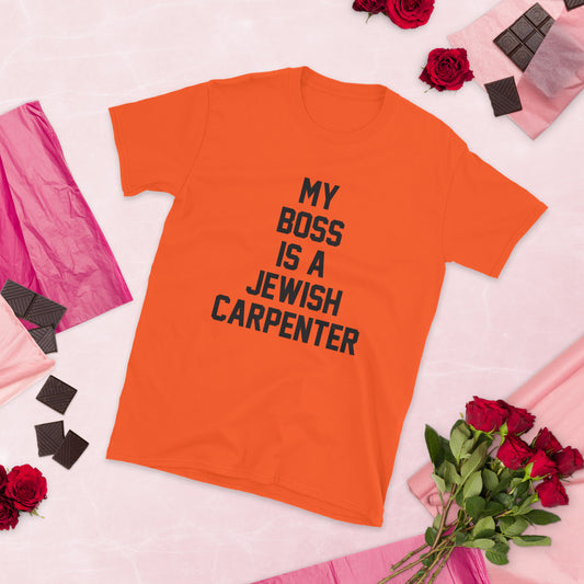 My Boss is a Jewish Carpenter - Short-Sleeve Unisex T-Shirt w/ Black letters