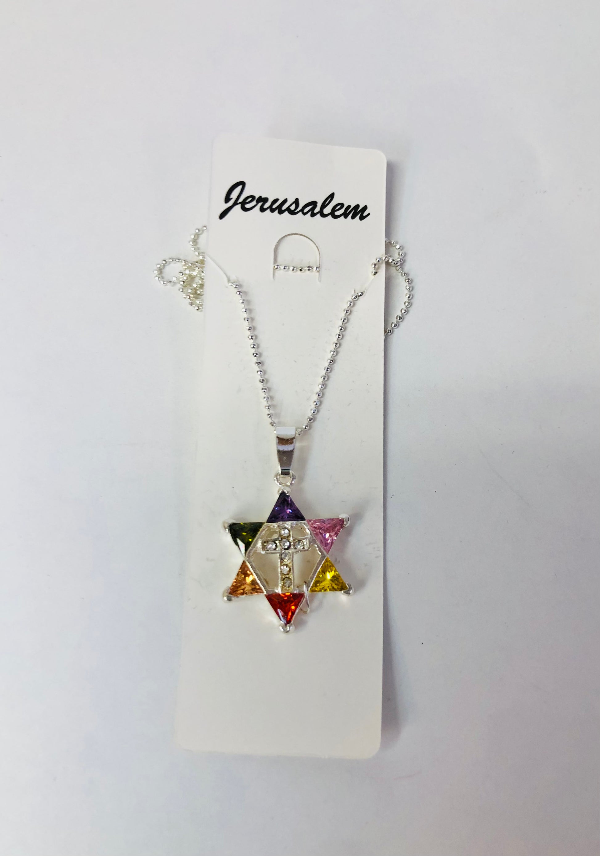 This is a beautiful 1 Micron (925) Silver Star of David that features a cross in the center.